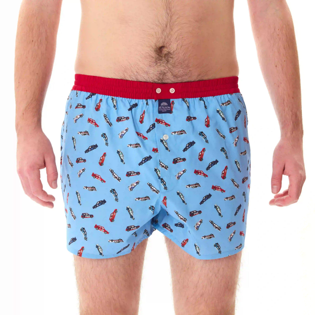 McAlson – Herren-Boxershorts aus 100 % Baumwolle – Rennwagen-Rallye-Design – Blau